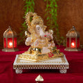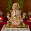 Dagdusheth Ganpati Murti With Chowki For Home - Gold Plated (7 Inch)