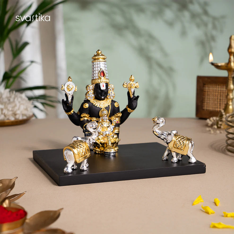 Experience the sacred union of Lord Tirupati Balaji and Goddess Lakshmi (Gajalakshmi) with this exquisite idol — a timeless symbol of abundance, protection, and spiritual harmony.