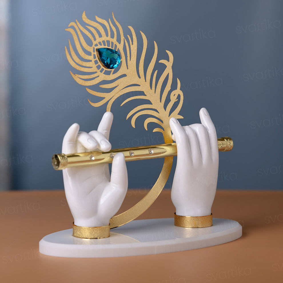 Lord Krishna’s Hands Idol | 24K Gold Plated Flute Murti | Elegant Home Decor Showpiece