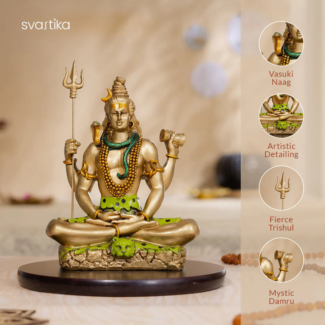 Invoke the divine presence of Mahadev in his most serene and powerful form — Dhyana Mudra. This exquisitely crafted Lord Shiva idol captures the cosmic yogi in a meditative state, representing balance, silence, and supreme spiritual consciousness.