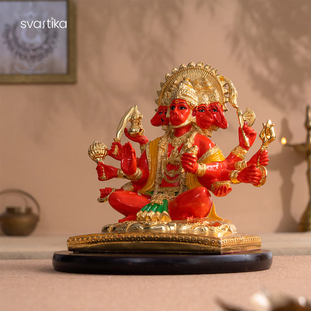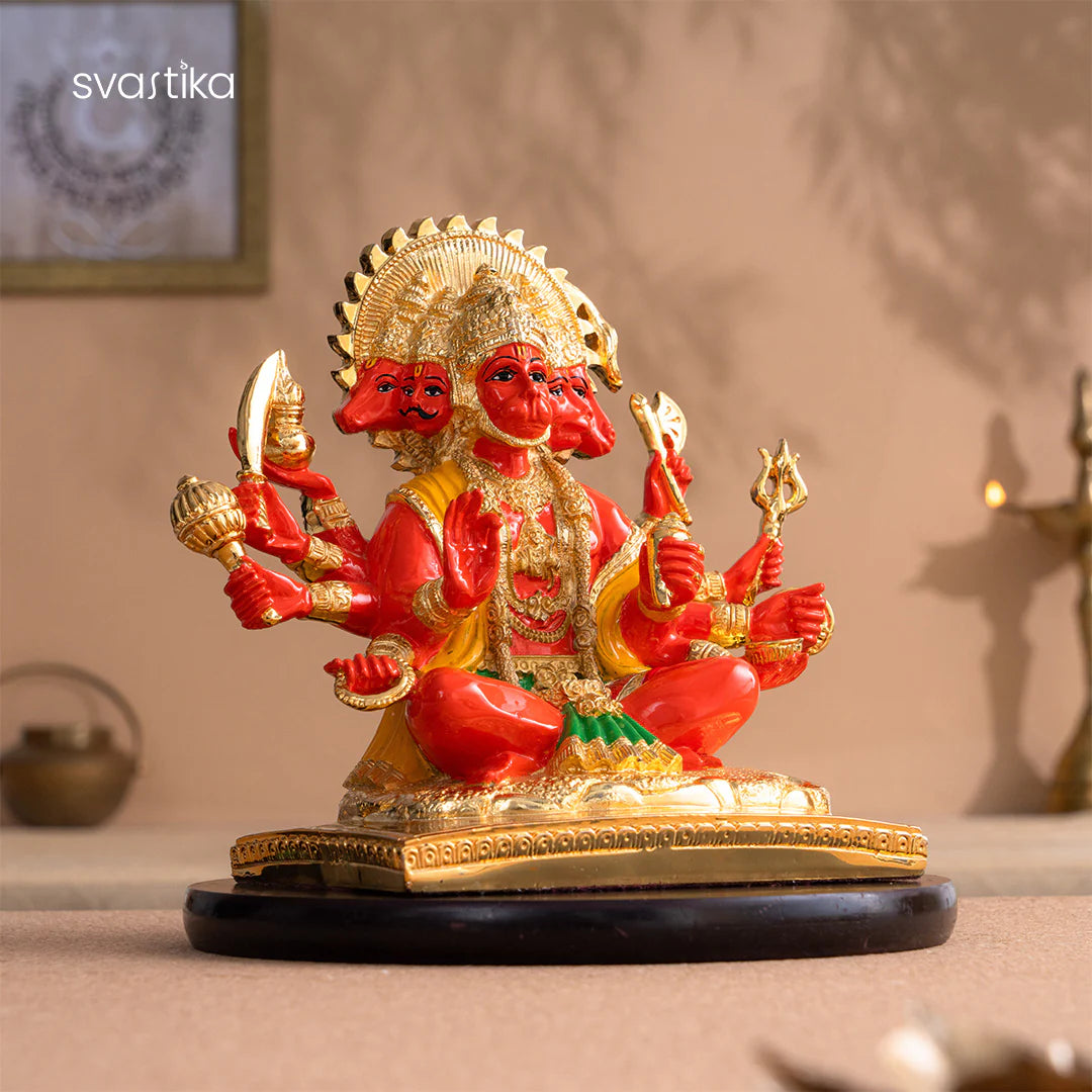 Panchmukhi Hanuman Ji Statue – 8 Inch Gold-Plated Idol of Strength & Divine Protection