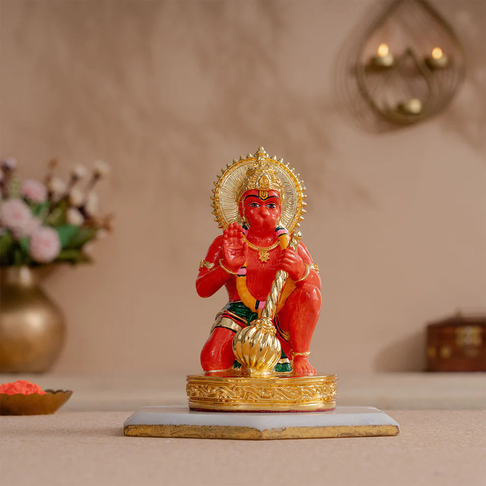 Invoke the unwavering power and devotion of Lord Hanuman with this sacred Sinduri Hanuman Ji Idol, adorned in a radiant gold-coated finish and traditional vermilion (sindur) tones. Inspired by temple-style Hanuman idols seen across India, this murti embodies shakti (strength), bhakti (devotion), and raksha (protection).